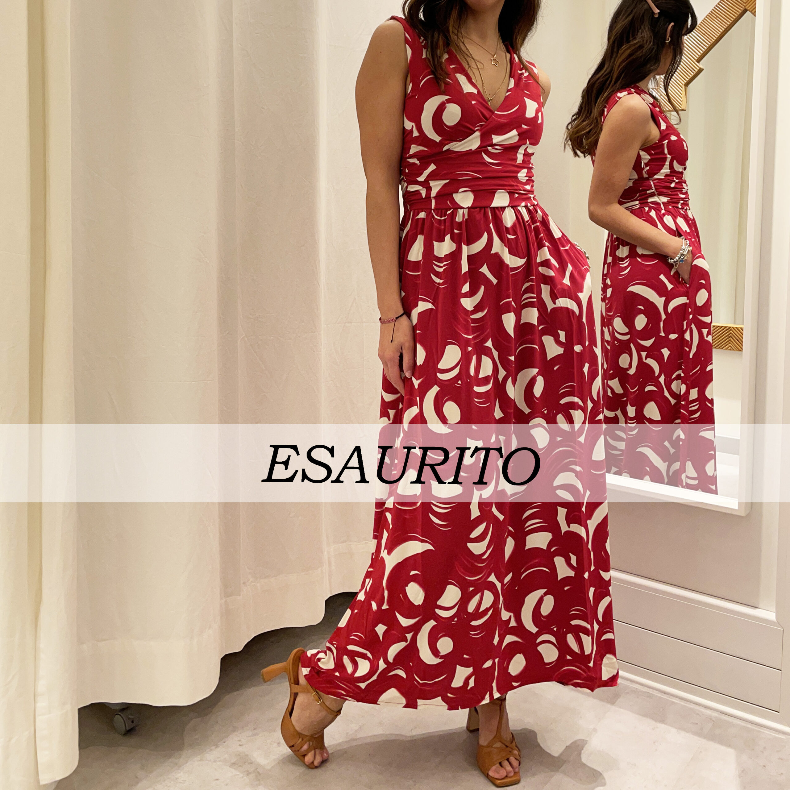 Abito lungo smanicato in fantasia bianco e rosso con scollo a V dalla vestibilità sciancrata sul top e morbida sulla gonna. Il tessuto fresco è ideale per le calde giornate d’estate e per chi viaggia essendo un capo che non si stropiccia in valigia.